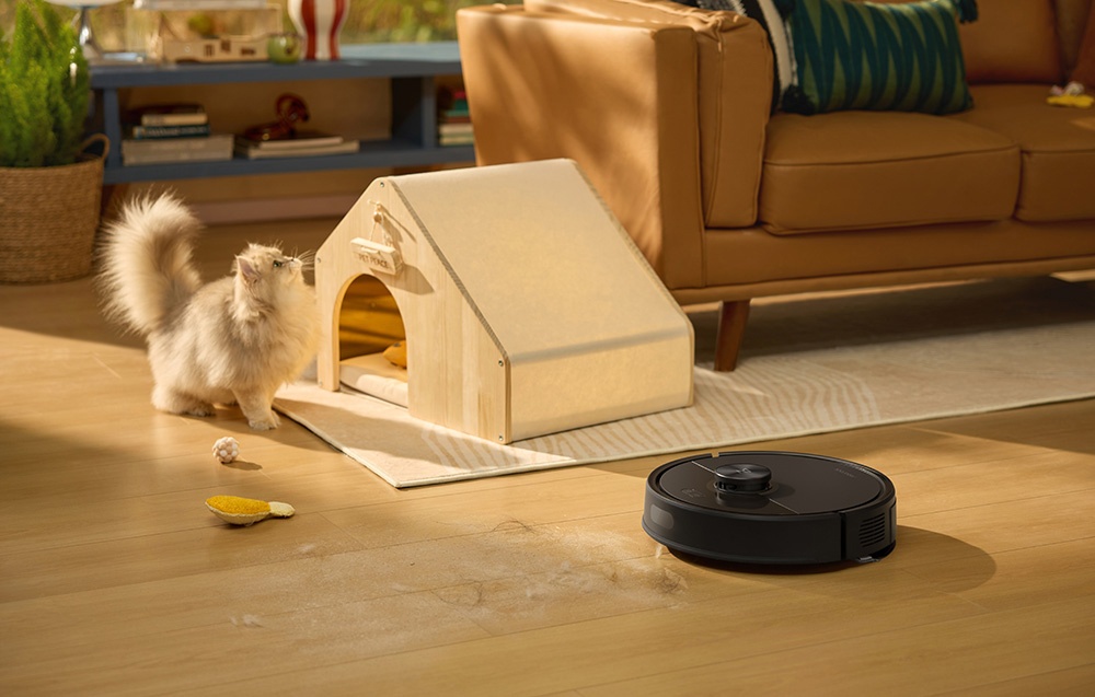 Dzięki sile ssania sięgającej 10 000 Pa robot w mgnieniu oka usuwa różnego rodzaju zanieczyszczenia. Doskonale radzi sobie nawet z brudem ukrytym w szczelinach w podłodze lub w gęstych włóknach dywanu. Szybko eliminuje kurz, okruchy czy sierść – świetnie sprawdzi się w domach właścicieli zwierząt, rodziców małych dzieci i nie tylko!