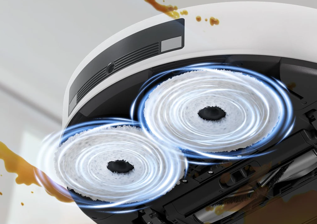To, co wyróżnia ten model na tle konkurencji, to zastosowanie gorącej pary do dezynfekcji i czyszczenia nakładek mopujących. Podczas cyklu mycia w stacji bazowej, para o wysokiej temperaturze skutecznie usuwa bakterie oraz uporczywe plamy z tkaniny, eliminując przy tym nieprzyjemne zapachy. Dwa obrotowe mopy pracują z prędkością 180 obrotów na minutę, co pozwala na skuteczne doczyszczenie zaschniętych zabrudzeń z kawy czy błota. Dzięki temu rozwiązaniu podłogi są nie tylko lśniące, ale również sterylnie czyste bez konieczności ręcznego prania akcesoriów.