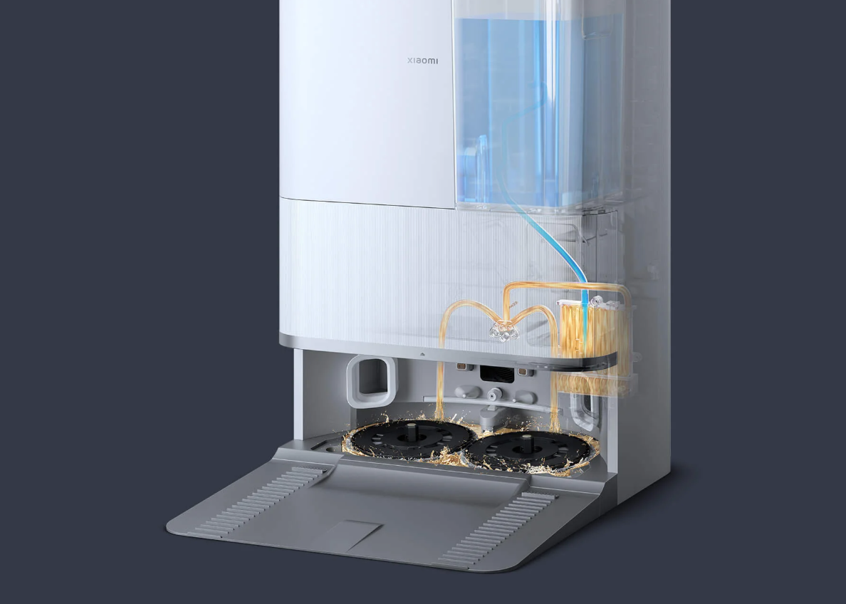 Stacja ładująca Xiaomi Robot Vacuum 5 Pro została zaprojektowana z myślą o maksymalnej wygodzie i higienie użytkowania. Po zakończeniu pracy, robot automatycznie wraca do stacji, gdzie podkładki do mopa są czyszczone gorącą wodą o temperaturze 80°C. Wysoka temperatura skutecznie rozpuszcza i usuwa uporczywe plamy, a następnie są one suszone gorącym powietrzem, co zapobiega powstawaniu pleśni i nieprzyjemnych zapachów. Dodatkowo stacja jest wyposażona w system automatycznego opróżniania kurzu, który przenosi zanieczyszczenia do dużego worka na kurz o pojemności 2,5 l, co oznacza konieczność wymiany worka tylko raz na około 75 dni.