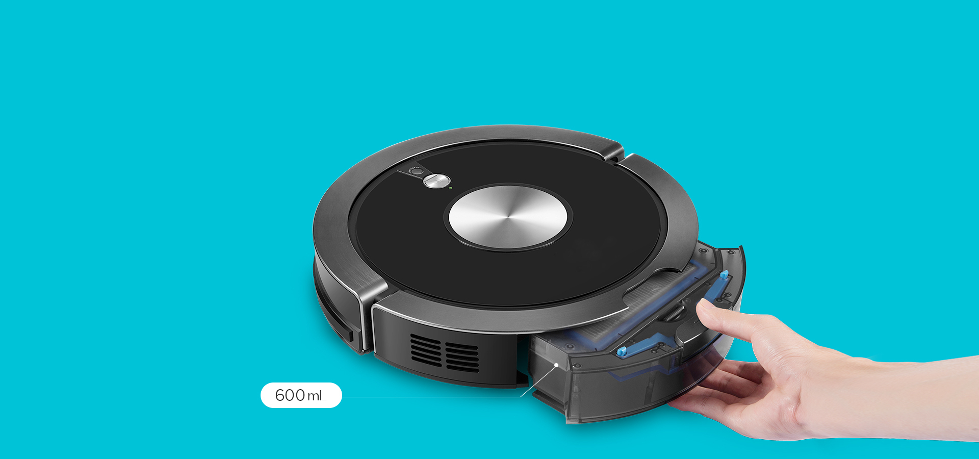 Pojemnik na zanieczyszczenia o pojemności 600 ml pozwala robotowi A9s na wykonywanie większej liczby zadań bez konieczności częstego opróżniania. Komplementarny filtr o wysokiej wydajności wychwytuje kurz i znacznie oczyszcza powietrze.