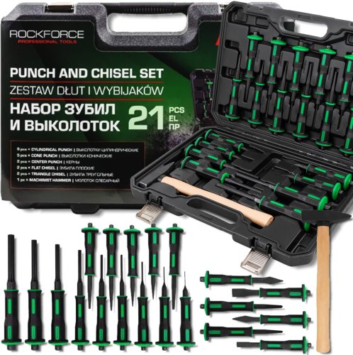 ROCKFORCE precyzyjny zestaw DŁUT i wybijaków 21 ELEMENTÓW ze STALI w WALIZCE