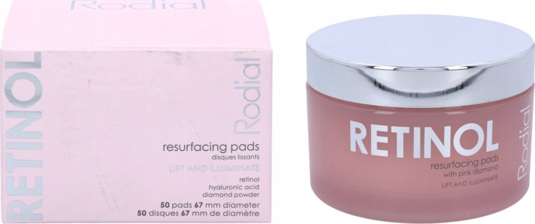 Płatki do twarzy Rodial Retinol Resurfacing Pads to przełomowy produkt, który odmieni Twoją nocną rutynę pielęgnacyjną. Dzięki wyjątkowej formule, wzbogaconej o retinol, kwas hialuronowy, niacynamid oraz proszek diamentowy, te płatki skutecznie odmładzają, wygładzają i nawilżają skórę. Regularne stosowanie pozwala uzyskać efekt promiennej i zdrowej cery, wspierając regenerację skóry podczas snu.