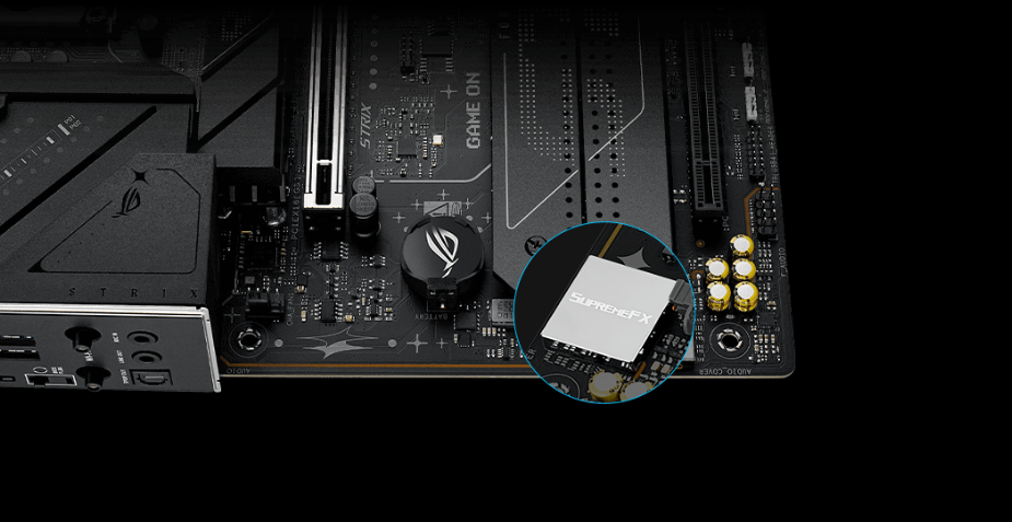 ROG SupremeFX to unikatowe połączenie technologii sprzętowych i programowych, które zapewniają doskonały dźwięk. Implementacja Strix B860-F obejmuje kodek ALC4080 do odtwarzania w wysokiej rozdzielczości do 32-bit/384 kHz na wszystkich kanałach. Wyjście na przednim panelu jest przesyłane strumieniowo przez zintegrowany wzmacniacz Savitech, który może napędzać akustykę wysokiej wierności do szerokiej gamy głośników i zestawów słuchawkowych.