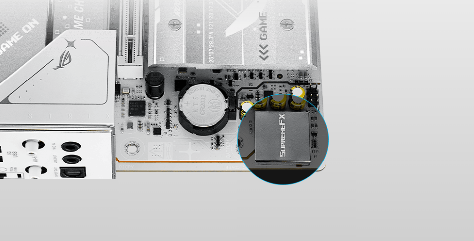 ROG SupremeFX to unikatowe połączenie technologii sprzętowych i programowych, które zapewniają doskonały dźwięk. Implementacja Strix B860-G obejmuje kodek ALC1220P do odtwarzania w wysokiej rozdzielczości do 32-bit/384 kHz na wszystkich kanałach. Wyjście na przednim panelu jest przesyłane strumieniowo przez zintegrowany wzmacniacz Savitech, który może napędzać akustykę wysokiej wierności do szerokiej gamy głośników i zestawów słuchawkowych.
