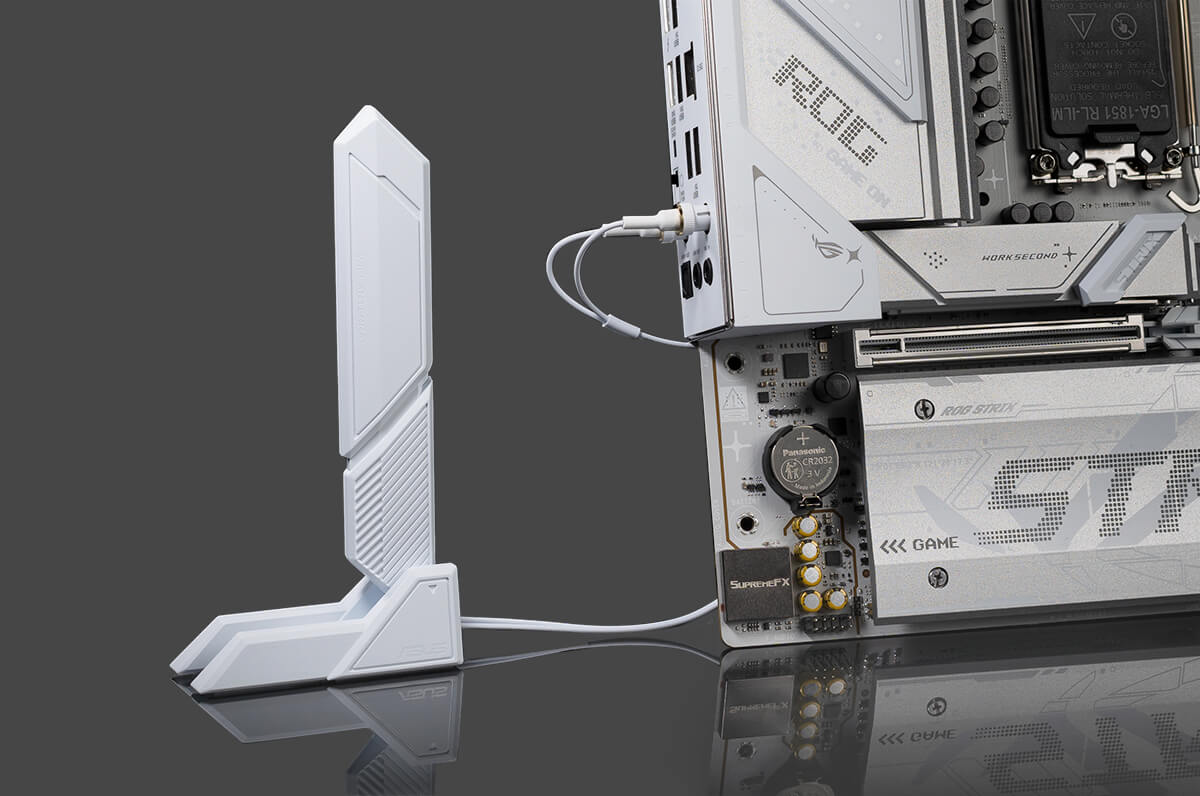 Wbudowany Intel® 2.5Gb Ethernet zwiększa prędkość połączenia przewodowego, zapewniając 2,5 razy większą prędkość niż standardowe połączenia Ethernet, co pozwala na szybkie przesyłanie plików, gry z niskim opóźnieniem i strumieniowe przesyłanie wideo w wysokiej rozdzielczości.