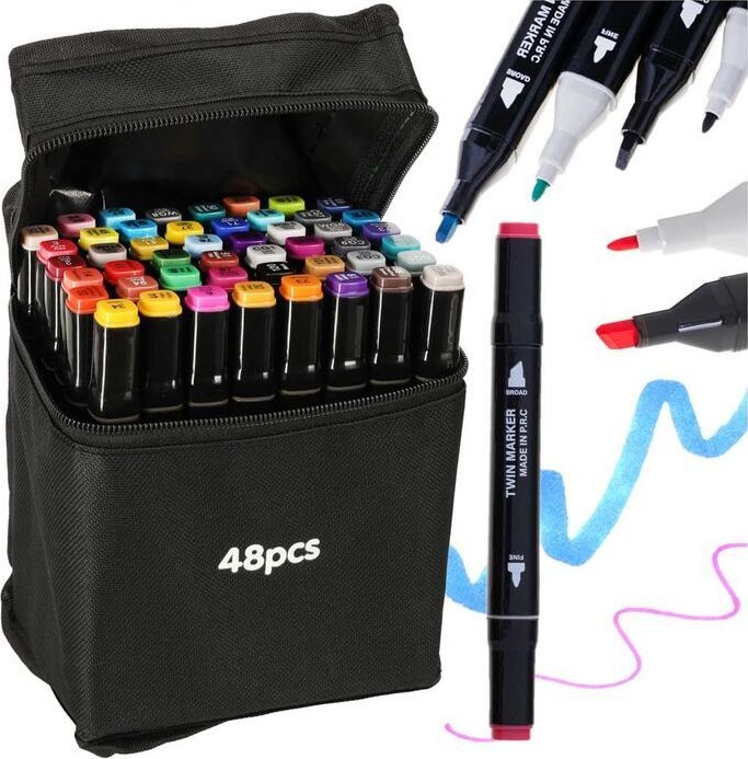 RoGer Double-sided alcohol markers to zestaw 48 wszechstronnych markerów, które doskonale sprawdzą się w rękach osób twórczych, takich jak architekci, graficy, ilustratorzy oraz tych, którzy dopiero zaczynają swoją artystyczną przygodę. Te markery to niezbędne narzędzie do rysowania, pisania, ilustrowania, szkicowania, cieniowania, projektowania i kolorowania, co pozwala na nieograniczone wyrażanie swojej kreatywności.