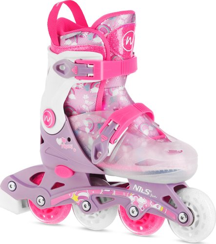 Łyżworolki NJ1025 FLIPZY od NILS FUN to znakomity wybór dla najmłodszych, którzy chcą rozpocząć swoją przygodę z jazdą na rolkach. Te różowe łyżworolki łączą w sobie funkcjonalność oraz atrakcyjny design, co czyni je idealnym towarzyszem dla młodych odkrywców.