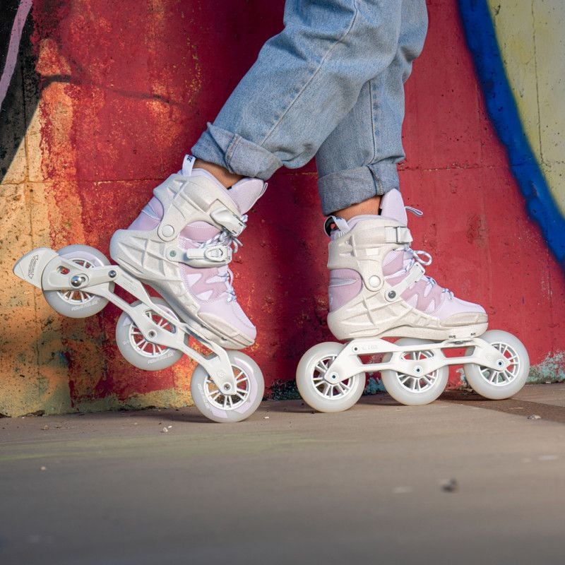 Damskie Rolki Powerslide Phuzion Argon spełnią oczekiwania najbardziej wymagających kobiet. Połączenie niesamowitego wyglądu z niesamowitymi osiągami. Konstrukcja buta X-Shell bardzo dobrze trzymająca stopę oraz jest bardzo dobrze wentylowana. Posiadają trzy, większa koła oraz płozę Trinity gwarantując lepsze przełożenie siły, większą kontrolę i stabilność. Większe koła gwarantują komfortową jazdę niezależnie od powierzchni po której jeździmy. W połączeniu z rewelacyjnym łożyskiem ABEC7 Carbon Pro 608
