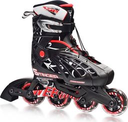 Zapinane na klamrę oraz sznurowanie gwarantuje, że rolki Stinger bardzo dobrze trzymają się na nodze i chronią przed urazami w czasie jazdy.