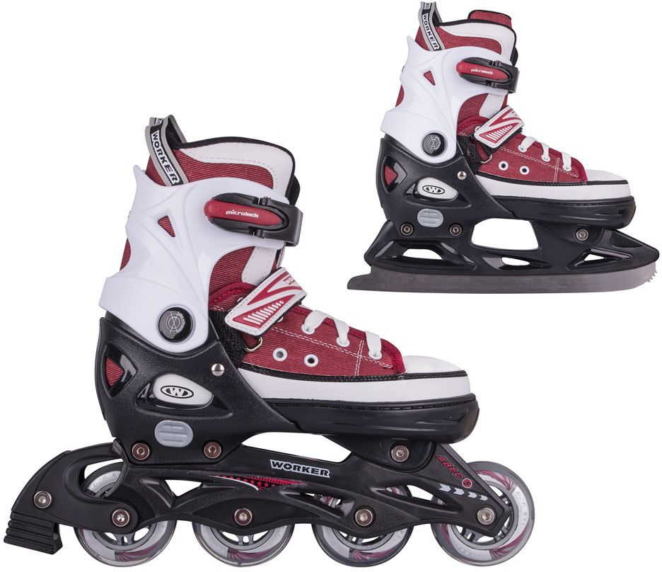 Rolki Worker Łyżworolki regulowane 2w1 WORKER Gondo model 2018 czerwono-białe r. 37-40 (167599)