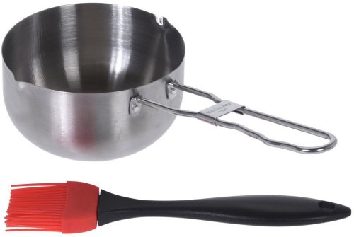 Rondelek z pędzelkiem to doskonałe rozwiązanie dla tych, którzy cenią sobie komfort i precyzję w kuchni. Silikonowy pędzelek o długości około 20 cm umożliwia łatwe i dokładne aplikowanie marynat, co znacząco podnosi walory smakowe potraw. Dodatkowo, rondelek jest prosty w czyszczeniu, co czyni go praktycznym narzędziem do codziennego użytku.