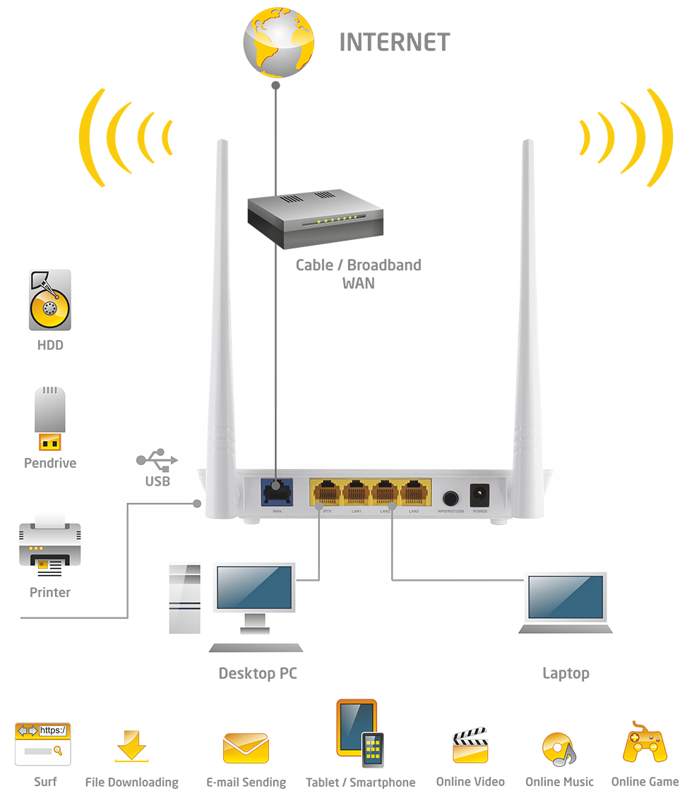 CERBERUS P 6802 to zaawansowany, przyjazny środowisku router WiFi, który jest zgodny ze standardem 802.11 n. Urządzenie pozwala na prędkość transmisji bezprzewodowej do 300Mbps. Zaawansowane zabezpieczenia WPA/WPA2 chronią sieć przed zagrożeniami. Dzięki funkcji WISP uzyskasz bezprzewodowe połączenie z internetem w miejscach pozbawionych kablowej infrastruktury operatora. Wbudowany port USB umożliwia podłączenie drukarek, dysku twardego lub innego nośnika pamięci z portem USB.
