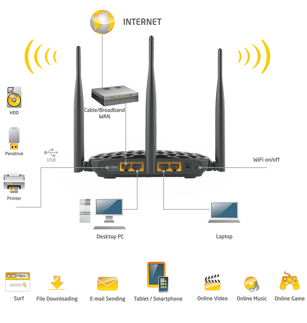CERBERUS P 6806 to router zaprojektowany dla dużych domów i biur. Urządzenie zgodne jest ze standardem 802.11 n i zapewnia prędkość transmisji bezprzewodowej do 450Mbps na paśmie 2.4 GHz. Zaawansowane zabezpieczenia WPA/WPA2 chronią sieć przed zagrożeniami. Dzięki gigabitowym portom prędkość transmisji kablowej jest 10 razy większa niż przy standardowym gnieździe Ethernet. Dzięki funkcji WISP uzyskasz bezprzewodowe połączenie z internetem w miejscach pozbawionych kablowej infrastruktury operatora. Wbudowany port USB umożliwia podłączenie drukarki, dysku twardego lub innego nośnika pamięci z portem USB.