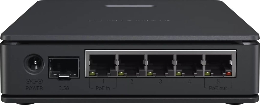 MikroTik hAP ax S obsługuje zasilanie przez gniazdo DC oraz PoE-in, co ułatwia instalację w różnych warunkach. W zestawie znajduje się zasilacz 24V 1.5A, a także możliwość zasilania innych urządzeń MikroTik poprzez pasywne PoE-out.
