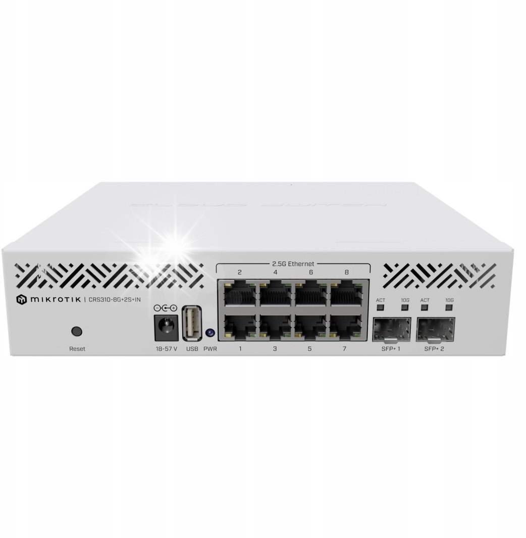 Switch MikroTik CRS310-8G+2S+IN jest wyposażony w 8 portów 2.5 Gigabit Ethernet, co umożliwia szybkie przesyłanie danych oraz efektywne zarządzanie obciążeniem sieciowym. Dzięki temu, idealnie sprawdzi się w środowiskach, gdzie wymagana jest wysoka przepustowość oraz niskie opóźnienia.