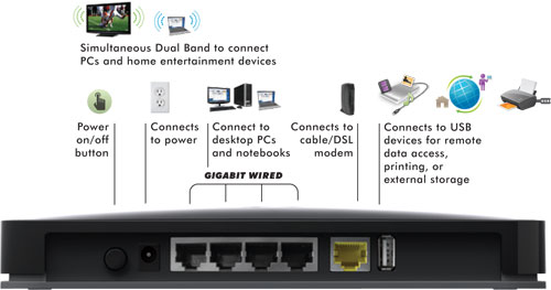 Bezprzewodowy router do sieci kablowych i DSL umożliwiający bezprzewodowe i przewodowe podłączenie komputerów do tego samego łącza internetowego. Router jest zgodny ze standardem IEEE 802.11a/n oraz kompatybilny ze standardem IEEE 802.11b/g. Urządzenie wyposażone jest również w cztery porty 10/100/1000BaseT (RJ45), do których można podłączać komputery PC lub inne urządzenia z kartą sieciową Ethernet. Dzięki wbudowanemu portowi USB do routera można podłączyć także dysk zewnętrzny i w prosty sposób udostępniać pliki.