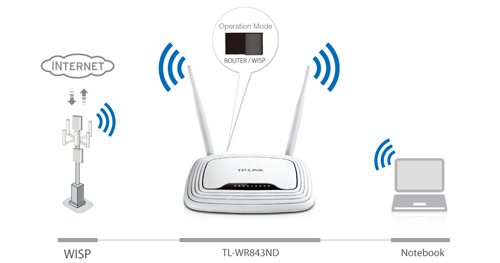 Bezprzewodowy router z funkcją AP i klienta WISP TL-WR843ND TP-LINK został opracowany specjalnie z myslą o użytkownikach korzystających z sieci bezprzewodowych dostawców Internetu. Dzięki połączeniom bezprzewodowym o prędkości do 300Mb/s jest odpowiedni do wymagających aplikacji takich jak transmisje strumieniowe wideo w jakości HD. Może również służyć jako zwykły bezprzewodowy router lub punkt dostępowy. Obsługuje też pasywne zasilanie PoE, co umożliwia łatwe umieszczenie produktu w miejscach gdzie niedostępne są gniazda zasilające, na przykład na zewnątrz budynków.
