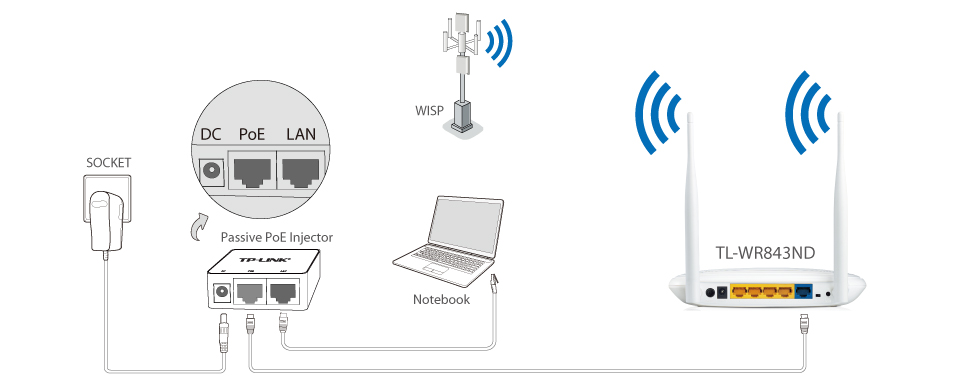 Urządzenie TL-WR843ND posiada port RJ-45 WAN obsługujący pasywne zasilanie PoE. Jest idealnym rozwiązaniem w przypadku konieczności instalacji urządzenia w miejscach, w których sygnał odbierany od bezprzewodowego dostawcy Internetu jest najśilniejszy, ale w których nie ma gniazdek sieci elektrycznej (np. na strychu lub w garażu). Urządzenie zapewnia możliwość odebrania zasilania PoE na odległość do 30 metrów. Dzięki temu możliwe jest wygodne umieszczenie urządzenia w miejscach dotąd niedostępnych!