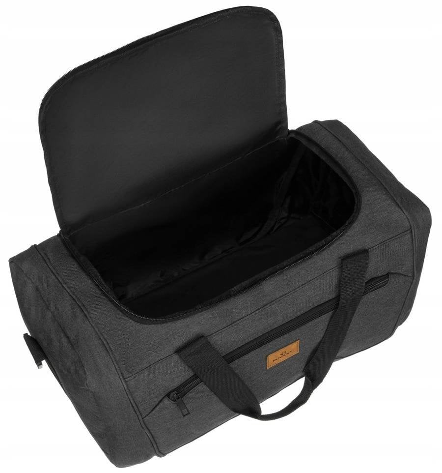 Pojemna i bardzo wytrzymała torba podróżna w sportowym stylu. Produkt znanej i cenionej polskiej marki. Wykonana z bardzo trwałej tkaniny poliestrowej w czarnym kolorze. Torba nie jest usztywniana, dzięki czemu po złożeniu zajmuje niewiele miejsca.