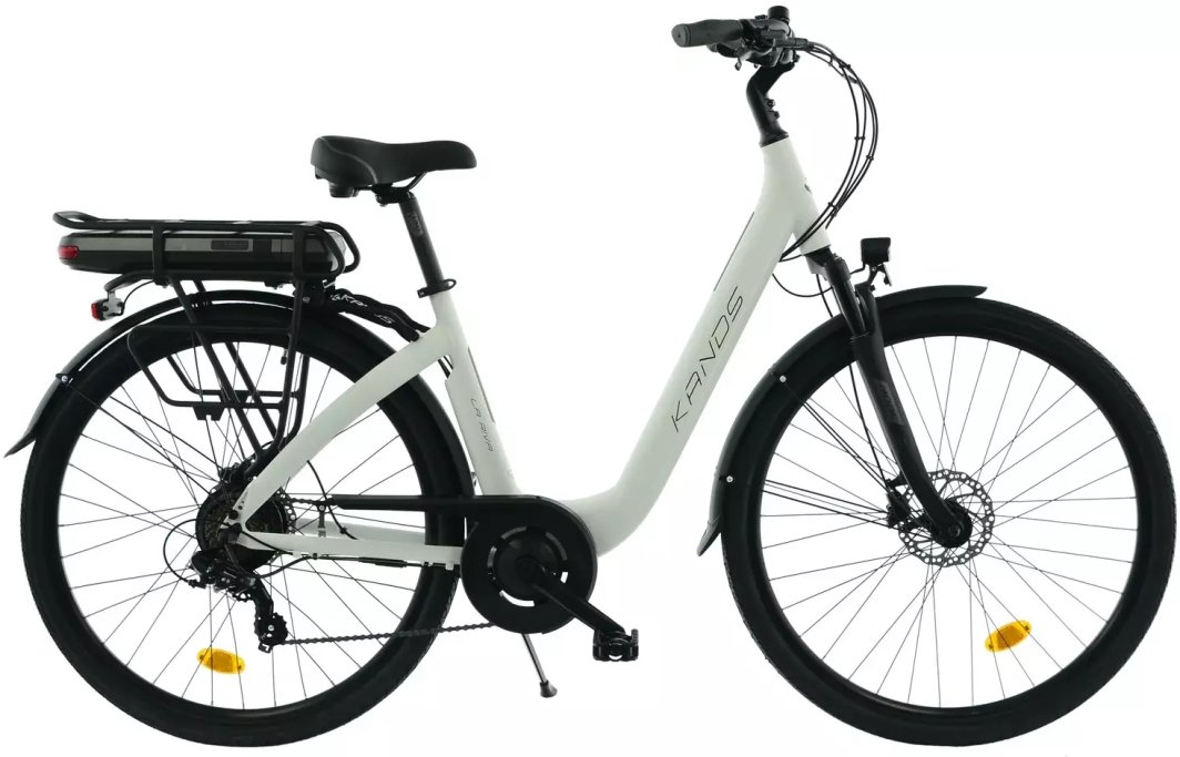 Kands La Riva 28 jest w pełni wyposażony, co czyni go gotowym do codziennego użytku. Oświetlenie LED z przodu i z tyłu zapewnia bezpieczeństwo po zmroku, a dodatkowe akcesoria, takie jak bagażnik, błotniki oraz osłona łańcucha, zwiększają jego funkcjonalność.