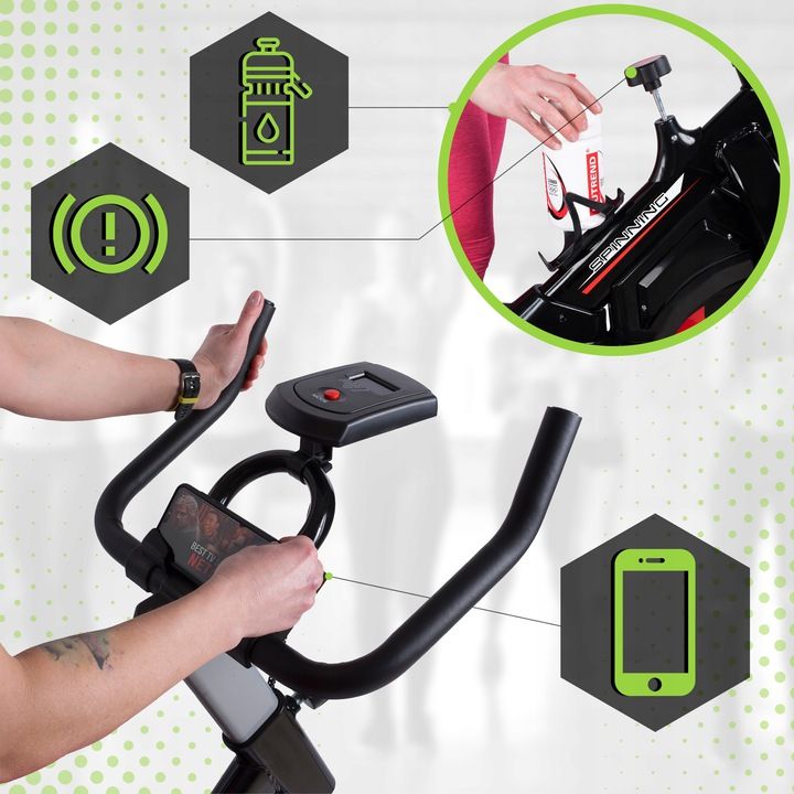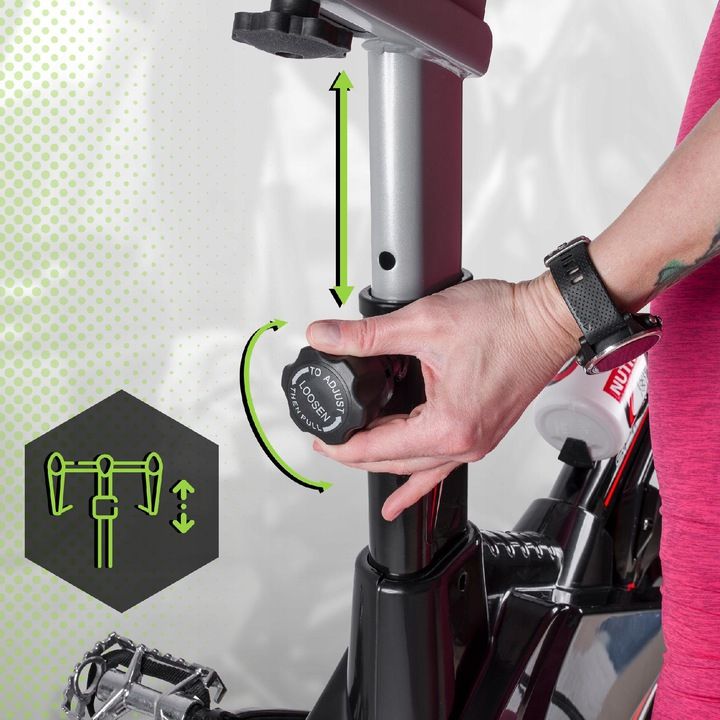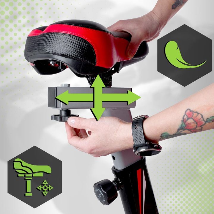 Wygodne, dostosowane do indoor cyclingch treningów siedzisko, możesz precyzyjnie regulować w pionie oraz w poziomie. Na tym sprzęcie z powodzeniem mogą pedałować osoby zarówno niskie, jak i wysokie, zapewniając sobie skuteczny, domowy trening.