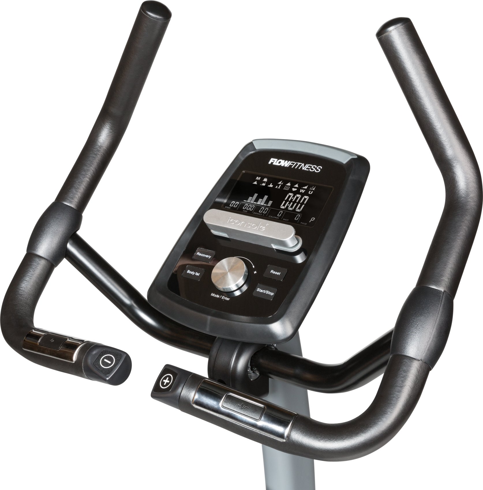 Kierownicę można trzymać na różne sposoby, ułatwiając zarówno aktywną pozycję, jak i ergonomiczną postawę. Zawiera również dwa poręczne czujniki tętna, które rejestrują tętno podczas treningu. Korzystanie z pasa piersiowego Flow Fitness jest również możliwe, ale ten element nie jest dołączony do zakupu.