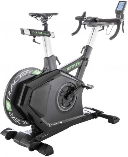 Racer 9 to zaawansowany model roweru indoor cycling Kettler dla wymagających kolarzy szosowych. Sprzęt jest niezastąpionym uzupełnieniem szosówki, pozwala prowadzić intensywne treningi w komfortowych domowych warunkach. Dzięki kółkom transportowym i stopkom na podstawie bez trudu można go przenieść i precyzyjnie wypoziomować. Posiada indukcyjny systemem oporu, elektroniczną regulację mocy w szerokim zakresie oraz oryginalną kierownicę z uchwytami Campagnolo Chorus EPS Ergopower.