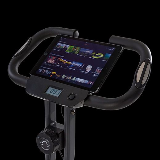 Oglądaj swój ulubiony serial lub film podczas treningu: umieść tablet w dołączonym uchwycie. Uchwyt może pomieścić nawet laptopa 13" (33 cm). Odpowiadaj na e-maile lub po prostu kontynuuj ćwiczenia.