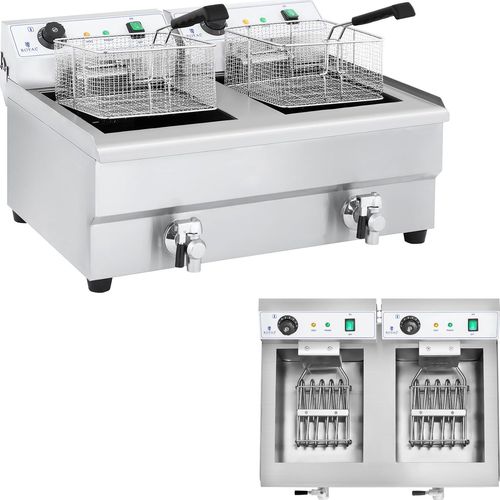 Royal Catering Frytkownica frytownica gastronomiczna dwukomorowa z kranami 230V 2x16L