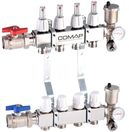 Rozdzielacz stal nierdzewna z zaworem termostatycznym, przepływomierzem, odpowietrznikiem aut.,zaworem spustowym, termometrem 4obw (DWZ)