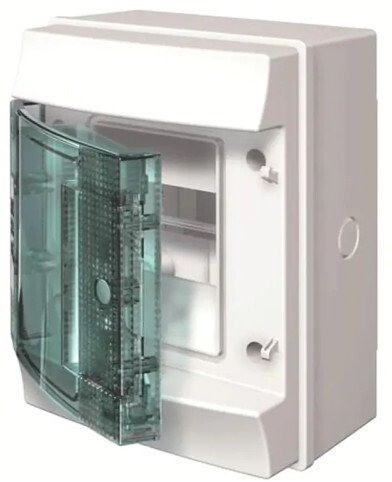Przezroczyste drzwi rozdzielnicy umożliwiają łatwy dostęp do wnętrza oraz kontrolę nad instalacją elektryczną. Nowoczesny design sprawia, że rozdzielnica Mistral65 doskonale wkomponuje się w estetykę każdego wnętrza, a jej szary kolor (RAL 7035) nadaje jej elegancki i dyskretny wygląd.