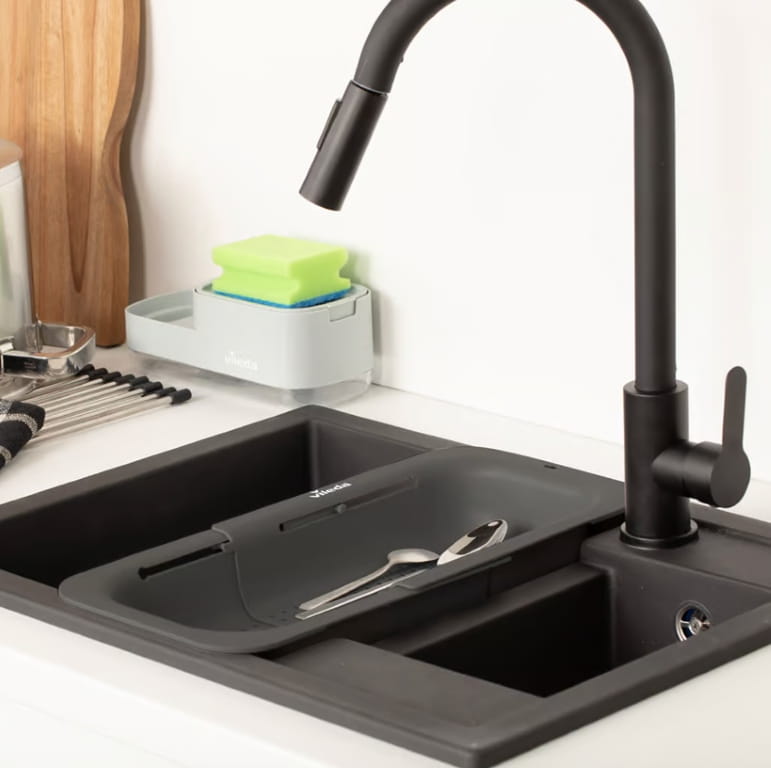 ✅ Regulowana szerokość: Rozsuwana konstrukcja pozwala dopasować durszlak do większości zlewozmywaków, zapewniając uniwersalność zastosowania.