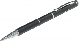 • Jeden długopis - cztery funkcje: rysik do ekranów dotykowych, długopis, wskaźnik laserowy oraz latarka LED