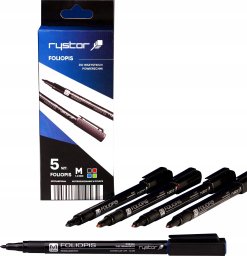 W zestawie znajduje się pięć foliopisów w różnych kolorach: dwa czarne, jeden czerwony i jeden niebieski. Taki dobór kolorów umożliwia różnorodność w oznaczaniu i tworzeniu notatek, co z pewnością ułatwi organizację pracy.