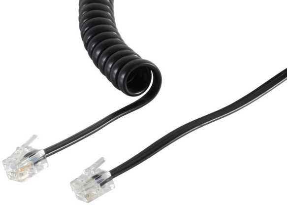 S-Impuls Wendelschnur 4/4 (RJ10) auf 4/4 (RJ10) schwarz, 2m, Polybeutel