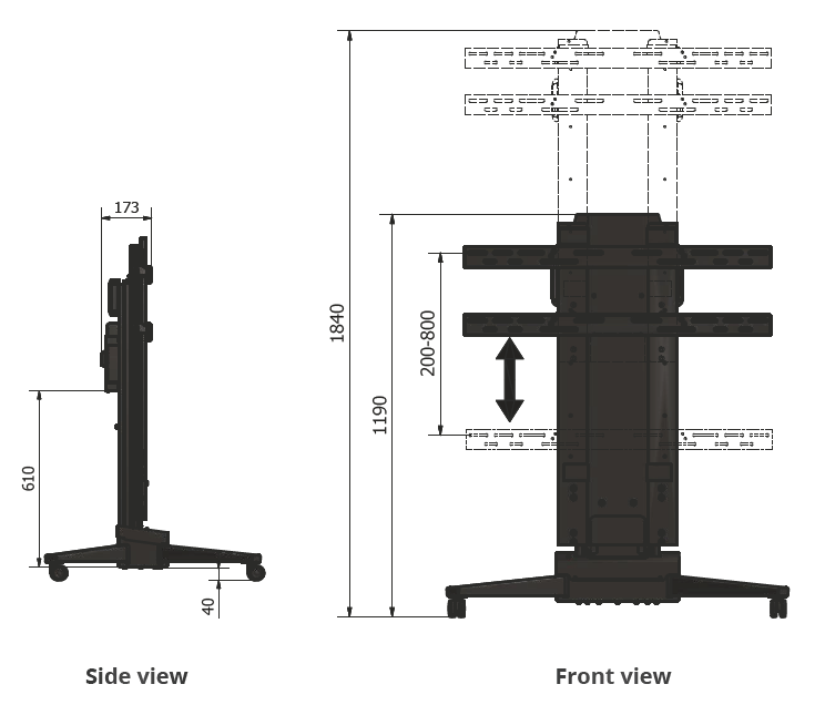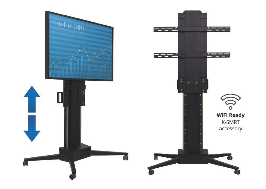 Seria Mobilift ECO to wygodne i rozsądne cenowo rozwiązania, umożliwiające podnoszenie i opuszczanie ekranu i jego przesuwanie. Niezwykle wytrzymałe koła, wyposażone w hamulec nożny, zapewniają pełną mobilność i zabezpieczenie przed nieumyślnym przesunięciem windy. Dzięki szerokiemu, 650 mm zakresowi ruchu w pionie, umożliwiają dobranie wygodnej pozycji oglądania dla wszystkich użytkowników.