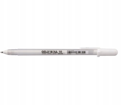 Długopis Sakura Gelly Roll Basic White #10 doskonale sprawdza się na ciemnych i kolorowych papierach, gdzie jego biały atrament wyróżnia się i przyciąga wzrok. To idealne rozwiązanie dla wszystkich, którzy pragną dodać wyjątkowy akcent do swoich prac artystycznych.