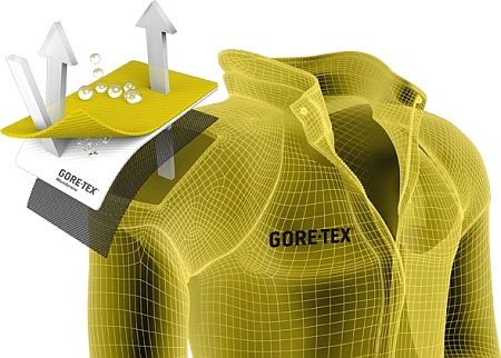 Tajemnica Gore-Tex® leży w jej rewolucyjnej dwuelementowej membranie. Wykonana z ekspandowanego PTFE część membrany zawiera ponad 9 miliardów mikroskopijnych porów na cal kwadratowy. Pory te są około 20 000 mniejsze od kropli wody, ale 700 większe od cząsteczki pary wodnej. Woda nie może zatem przeniknąć membrany Gore-Tex®, ale jako para (gaz) przenika przez nią z łatwością.Zintegrowana ze strukturą ePTFE jest olejofobową, czyli odpychającą tłuszcze substancją, pozwalającą na przenikanie pary wodnej, a zarazem tworzącą fizyczną barierę zapobiegającą przenikaniu substancji zanieczyszczających, takich jak oleje, kosmetyki, substancje odstraszające owady i składniki żywności. Rezultatem jest całkowicie wodoszczelna, wiatroszczelna i oddychająca membrana.