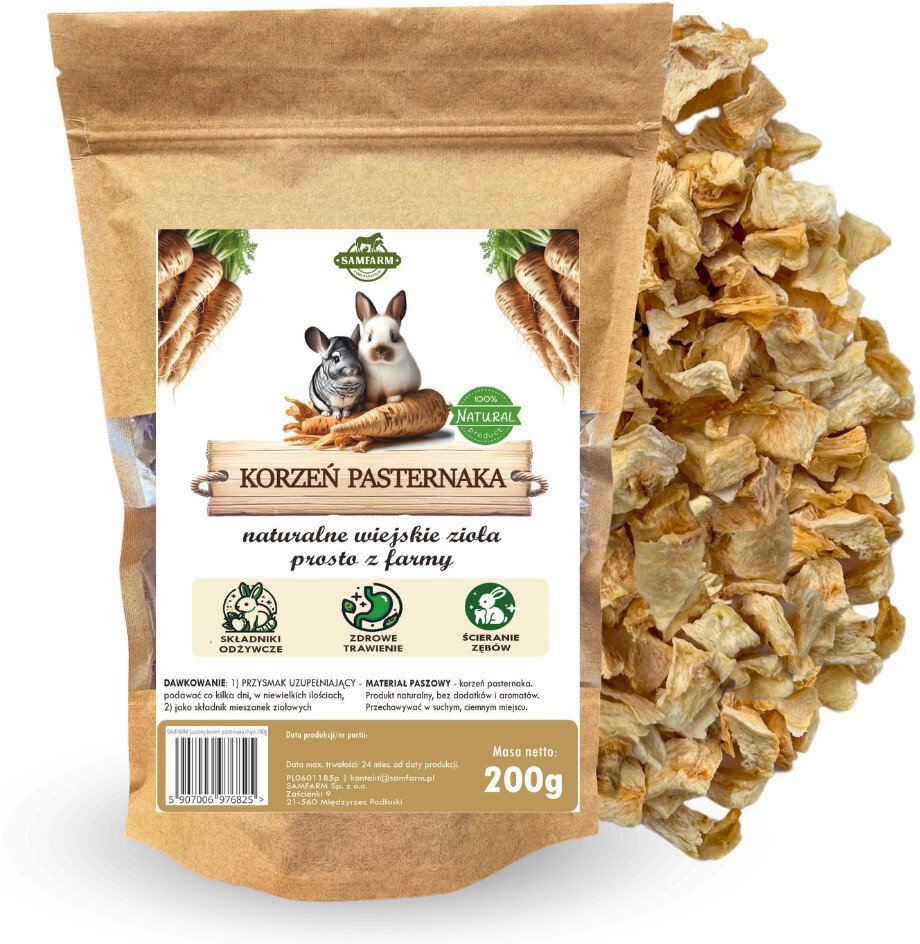Samfarm Suszona kostka pasternaka to znakomity wybór dla opiekunów królików i gryzoni, którzy chcą zaoferować swoim pupilom zdrową i smaczną przekąskę. Wykonana w 100% z suszonego korzenia pasternaku, ta kostka stanowi idealny gryzak, który wspiera zdrowie oraz dobre samopoczucie Twojego zwierzaka.