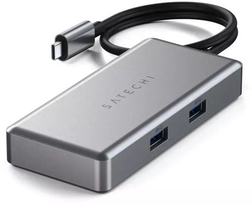 Adapter Satechi wyróżnia się eleganckim designem w kolorze szarym (Space Grey), co sprawia, że doskonale komponuje się z nowoczesnym biurem. Jego kompaktowe wymiary ułatwiają transport i użytkowanie w różnych warunkach, co czyni go idealnym towarzyszem w podróży.