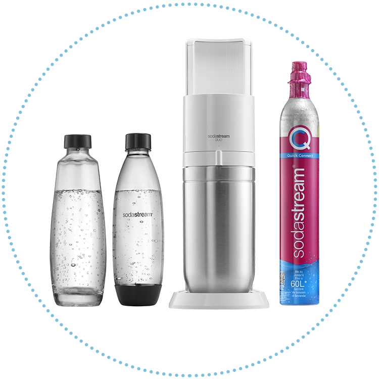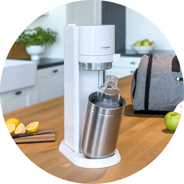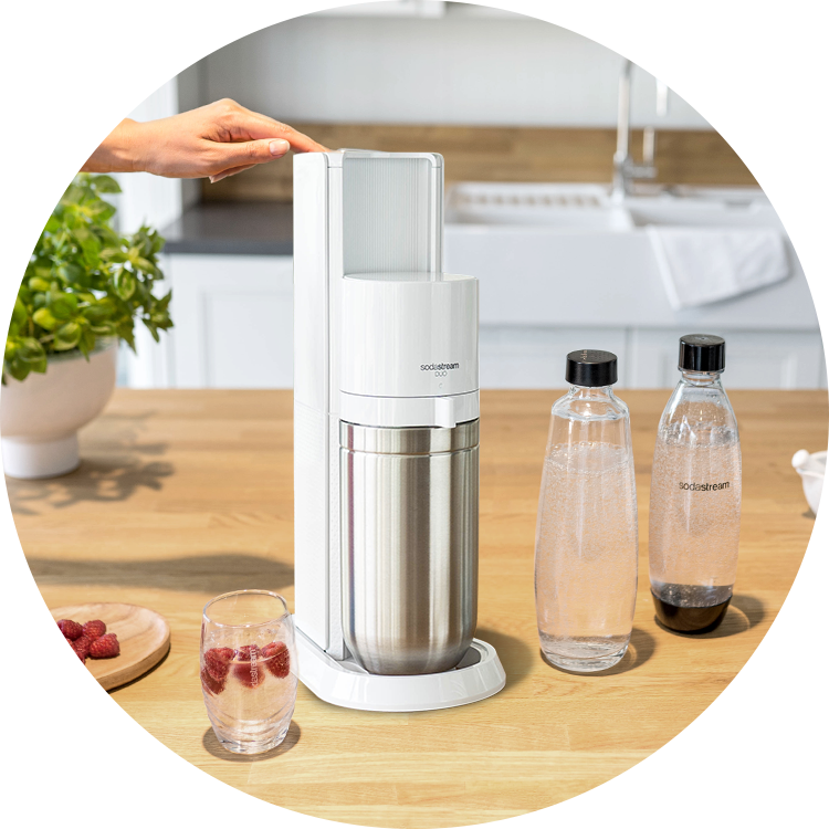SodaStream DUO to wygodny w obsłudze i niezwykle elegancki biały saturator do gazowania wody. Nasyca wodę bąbelkami i tworzy cudowny bąbelkowy napój w zaledwie kilka sekund. SodaStream DUO pozwala bąbelkować wodę nie tylko w wielorazowych butelkach plastikowych, ale również w eleganckich, szklanych karafkach, w zależności od okazji.