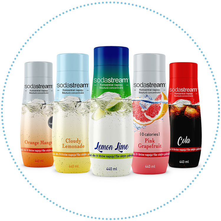 Woda gazowana nie wystarcza? Stwórz swój ulubiony napój, dzięki syropom SodaStream. Wybieraj spośród wielu różnych smaków takich jak: Pepsi, Mirinda, Pink Grapefruit, Cloudy Lemonade lub Orange Mango. Wybierz swój ulubiony.