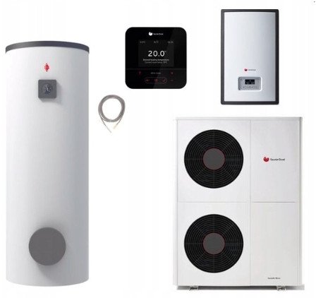 Saunier Duval pakiet OZE: pompa ciepła GeniaAir Mono HA 12-6 O + stacja hydrauliczna HE 9-6 WB + regulator SRC 720 + zasobnik c.w.u. FEW 300 + czujnik temperatury c.w.u. 550010044311