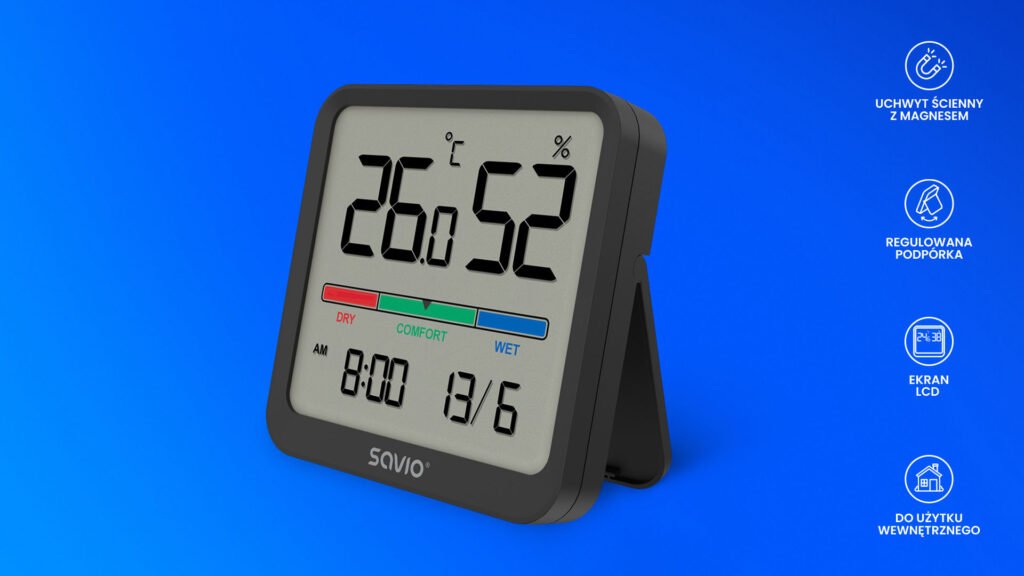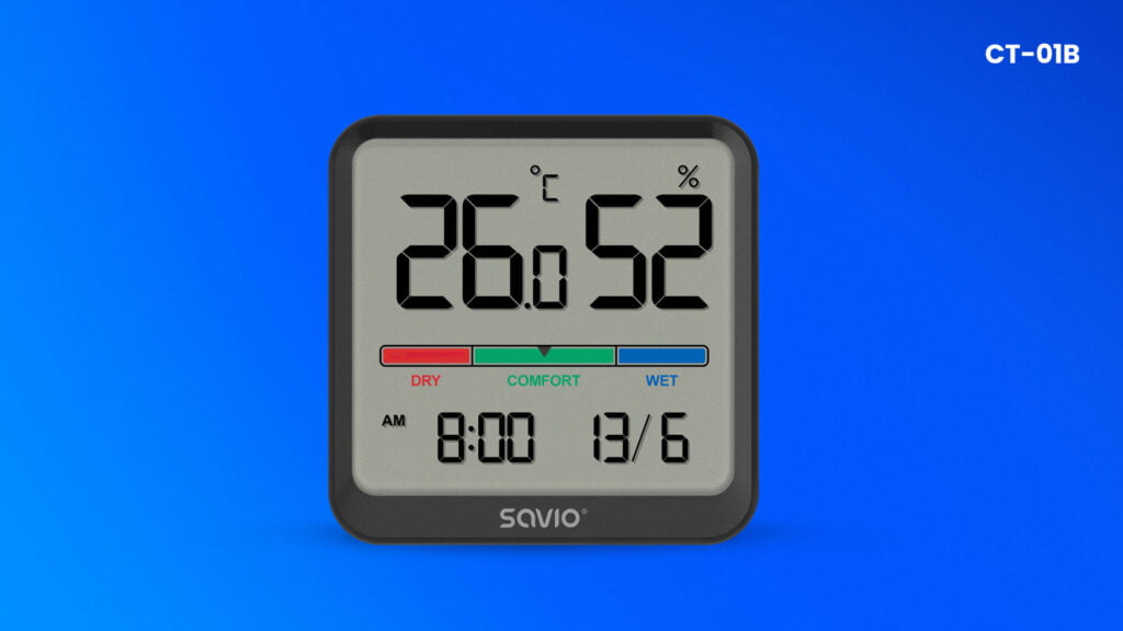 CT-01 od Savio to nowoczesne oraz wszechstronne urządzenie elektroniczne, które znajduje zastosowanie zarówno w gospodarstwach domowych, jak i w pracy. Eleganckie wykonanie oraz małe rozmiary sprawiają, że czujnik świetnie wpisze się w każdą przestrzeń. Dodatkowo, urządzenie zostało wyposażone w funkcję kalendarza oraz zegar.