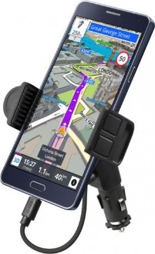 Uchwyt samochodowy cechujący się nie tylko możliwością utrzymania Twojego urządzenia, ale także możliwością jego ładowania za pośrednictwem gniazdka zapalniczki samochodowej.