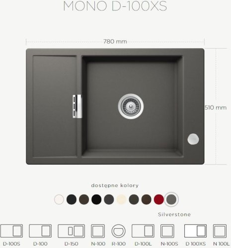 Model MONO D-100XS to zlew wpuszczany, co oznacza, że montuje się go bezpośrednio w blacie kuchennym. Taki sposób instalacji pozwala na estetyczne wykończenie oraz ułatwia utrzymanie czystości wokół zlewu.