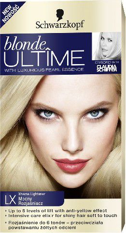 Mocny rozjaśniacz do włosów to produkt współtworzony z Claudią Schiffer. Jego formuła została wzbogacona luksusową esencją perły i olejkiem omega. Ten intensywnie pielęgnujący eliksir odbudowuje włosy od wewnątrz i wygładza ich powierzchnię po procesie koloryzacji. Dla pięknego połysku i luksusowo miękkich w dotyku włosów. Wypróbuj rozjaśniacz, który przeciwdziała powstawaniu żółtych tonów, aby uzyskać wyraźny, wyjątkowo jasny odcień blond, jaśniejszy nawet o 6 tonów.