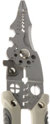 Narzędzie wielofunkcyjne służące do zdejmowania izolacji z przewodów, ucinania przewodów, ścinania izolacji na przewodach, rozdzielania żył i linii w przewodach, przycinania śrub, gwoździ, odkręcania/dokręcania nakrętek. Można je również wykorzystać do zaciskania złącz kablowych oraz jako szczypce do przytrzymania przewodu.HT-716 to uniwersalne narzędzie dla każdego instalatora do różnych zadań związanych z zarabianiem przewodów