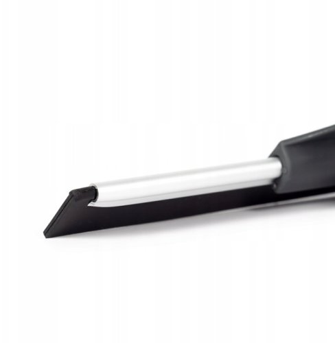 Ściągaczka Vespero została stworzona z wysokogatunkowego tworzywa, stali oraz gumy, co zapewnia jej trwałość i efektywność. Posiada specjalnie wygięty uchwyt, który ułatwia manewrowanie, a profilowana guma o długości około 25,5 cm doskonale przylega do powierzchni, co pozwala na skuteczne zbieranie wody oraz zapobiega powstawaniu zacieków. Jej lekka i poręczna konstrukcja sprawia, że jest idealna do użytku zarówno w domu, jak i w samochodzie.