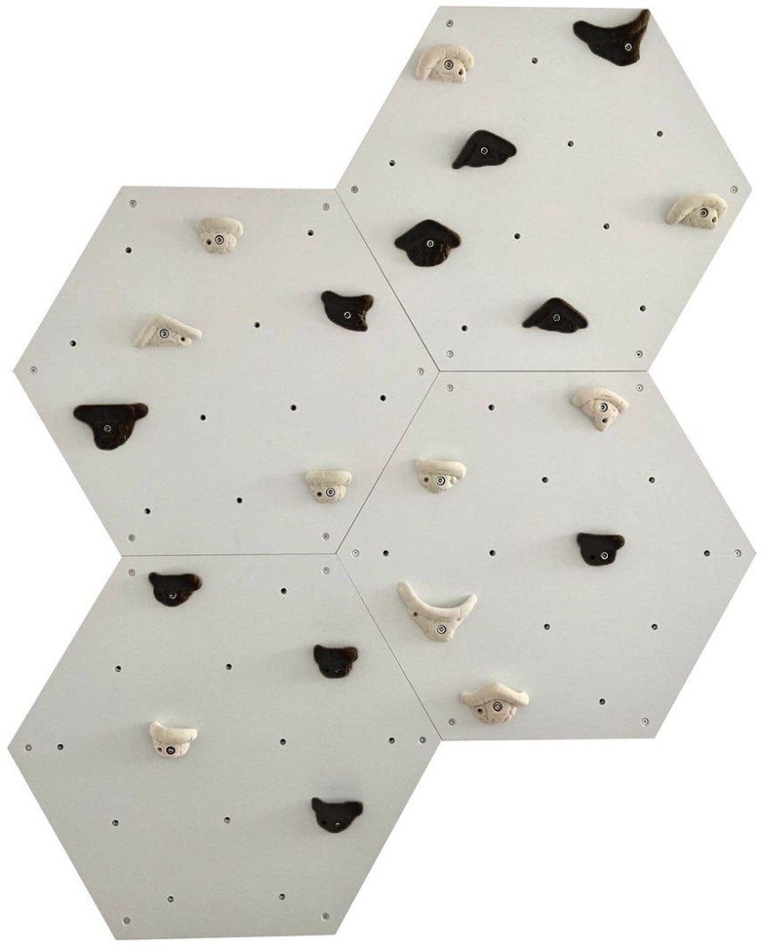Ścianka wspinaczkowa sześciokątna 4x szara płyta + 20 białe/czarne uchwyty